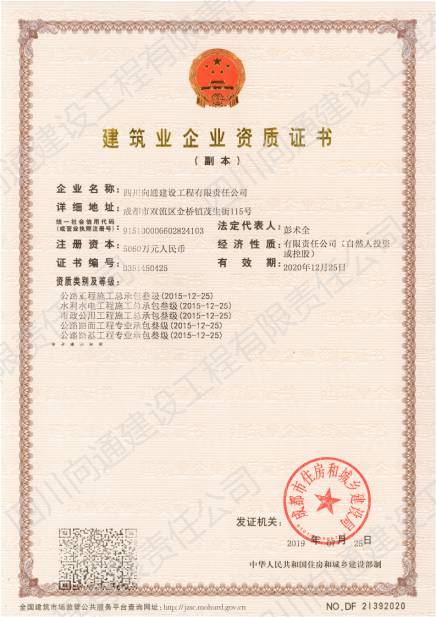 四川向通建設(shè)工程有限責(zé)任公司 四川向通建設(shè)工程有限責(zé)任公司成立于2007年,注冊資本金5060萬元,是一家專業(yè)從事瀝青混合料生產(chǎn)、專業(yè)分包以及市政道路、公路、路基工程專業(yè)施工建設(shè)的企業(yè)。公司注冊地址及生產(chǎn)廠區(qū)位于成都市雙流區(qū)金橋鎮(zhèn)茂生街115號,總占地面積約120畝;辦公地址位于雙流區(qū)海濱城海濱廣場7座11樓。公司生產(chǎn)廠區(qū)(雙流金橋)現(xiàn)有LB-5000型瀝青混合料拌合樓1套,每小時瀝青混合料生產(chǎn)量可達380噸。此外,根據(jù)項目需要,公司在多地建立4000型拌合站以服務(wù)施工(廣安齊福、達州、綿陽等),每小時瀝青混合料生產(chǎn)量為320噸。各種國內(nèi)外道路施工機械:攤鋪機、壓路機、銑刨機、灑布車、封層車、吊車、拖車、等70余臺,可滿足各種道路施工需求。公司近100輛保溫運輸車輛均安設(shè)保溫板、加塞保溫棉、覆蓋棉絮和隔熱防水雨篷,有效減少瀝青混合料在運輸過程中的溫度流失進而保證瀝青路面的施工質(zhì)量。 公司目前擁有眾多優(yōu)秀的技術(shù)人才,成熟的市場渠道,良好的企業(yè)聲譽?,F(xiàn)有各專業(yè)施工人才共計79人;5支專業(yè)的施工班組可根據(jù)現(xiàn)場的具體情況制定實施性施工方案。今后公司將竭誠為各界客戶提供出色的產(chǎn)品和服務(wù)及具有競爭性的價格和具有創(chuàng)新精神的高效解決方案。 公司曾經(jīng)榮獲:新津鄧雙段被新津縣政府評為“優(yōu)良工程”;雙流宗申大道被雙流縣政府評為“優(yōu)良工程”;成都后花園被成都市政府評為“重合同守信譽單位”;被三一重工評為“有遠見單位”。并在2018年1月被中國五冶集團評為“優(yōu)秀供方”;同年3月被四川交投評為2017年度“優(yōu)秀合作單位”的榮譽。榮譽的背后是我們公司所有員工堅持不懈的努力。 作為現(xiàn)代化的企業(yè),公司將以技術(shù)為切入點,以信譽為支撐點,以市場為著眼點,促進管理創(chuàng)新和技術(shù)創(chuàng)新。因此我公司能在短時間內(nèi)迅速發(fā)展成為一家擁有各類中大型施工機械設(shè)備的公司。在今后的工作中我們將借用現(xiàn)代電子信息溝通的便利為公司的發(fā)展助力,同時將秉承發(fā)揚以往的團結(jié)拼搏精神,推動公司成為“快穩(wěn)型”發(fā)展的企業(yè)。 在未來的發(fā)展過程中,四川向通始終秉承“以質(zhì)量求生存,以信譽求發(fā)展”的企業(yè)管理理念,以“啟后為先創(chuàng)佳績,爭做路建行業(yè)標”的企業(yè)宗旨與建設(shè)單位建立合作關(guān)系,創(chuàng)造更加輝煌燦爛的明天! 四 川 向 通 建 設(shè)